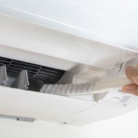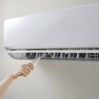 ・水に濡らしてこするだけで、エアコンの黒い汚れを落とすことができます。