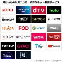 インターネット動画サービス:YouTube、Netflix、Hulu、Amazon Prime Video、U-NEXT、DAZN、Tver、dアニメ、Disney+ 対応