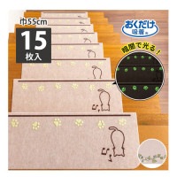 SANKO【巾55cm】おくだけ吸着蓄光階段マット ライトベージュ色 ネコ柄 15枚入り KX-46-LBE【暗闇で光る】