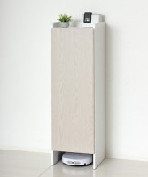 扉を閉めれば生活感を隠せてスッキリ。組立時に「左開き」か「右開き」をお選びいただけます。地板下には約15cmのスペースがあり、ロボット掃除機が入ります。